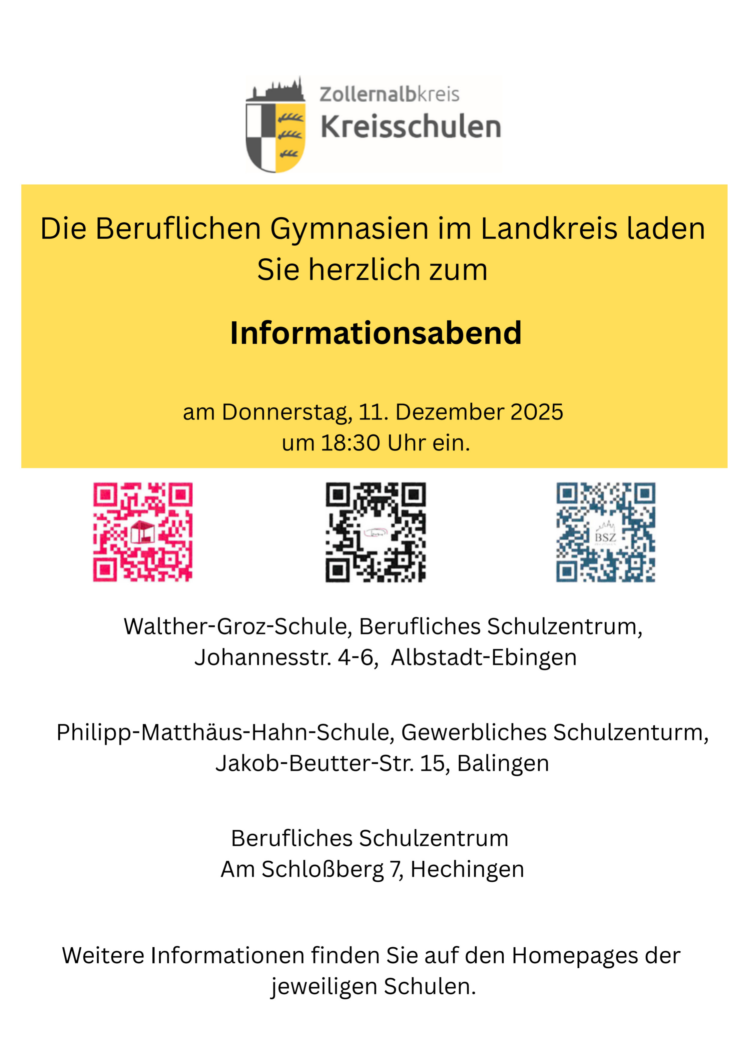 In allen drei Mittelzentren des Zollernalbkreises gibt es eine große Berufliche Schule.