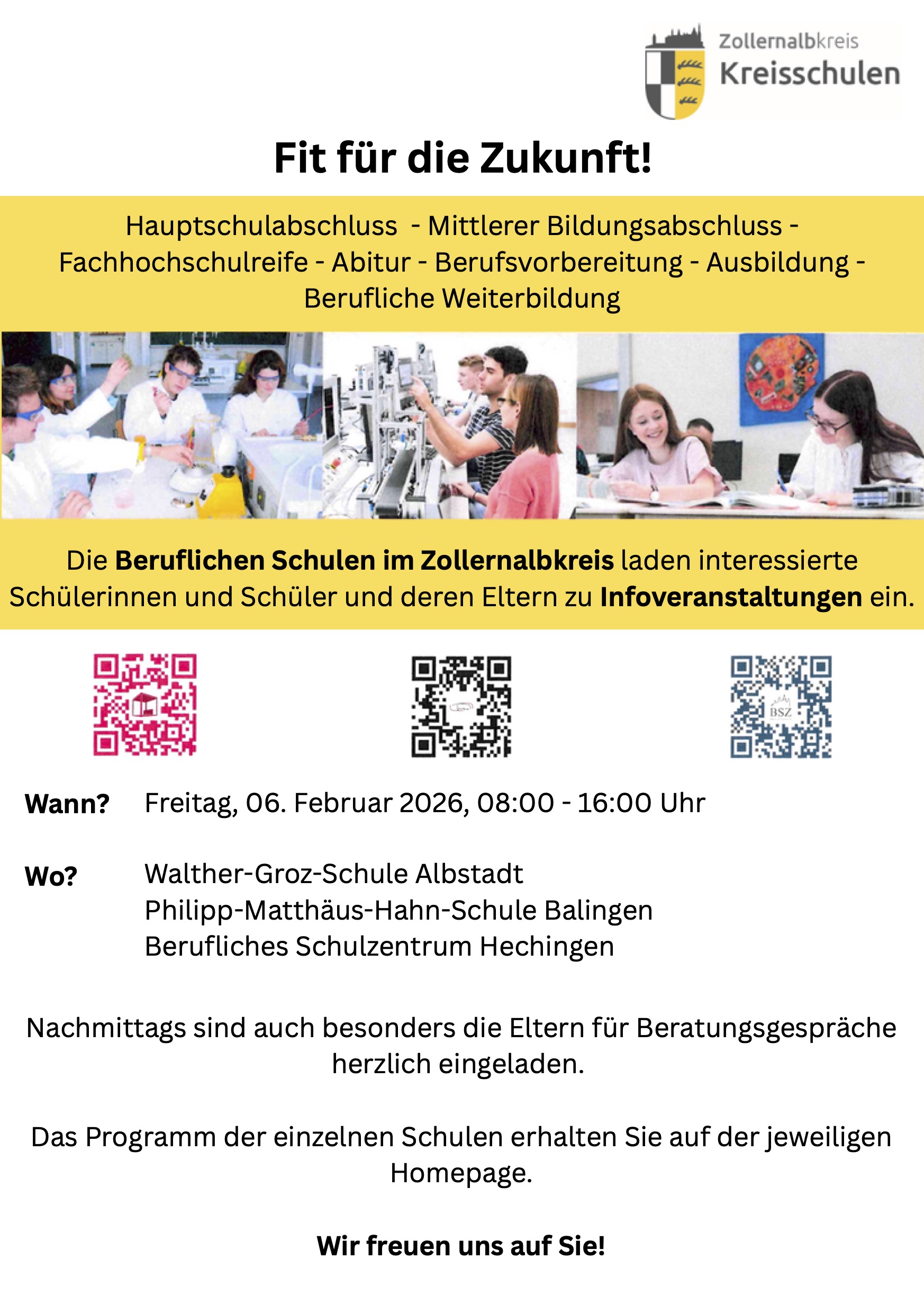 In allen drei Mittelzentren des Zollernalbkreises gibt es eine große Berufliche Schule.